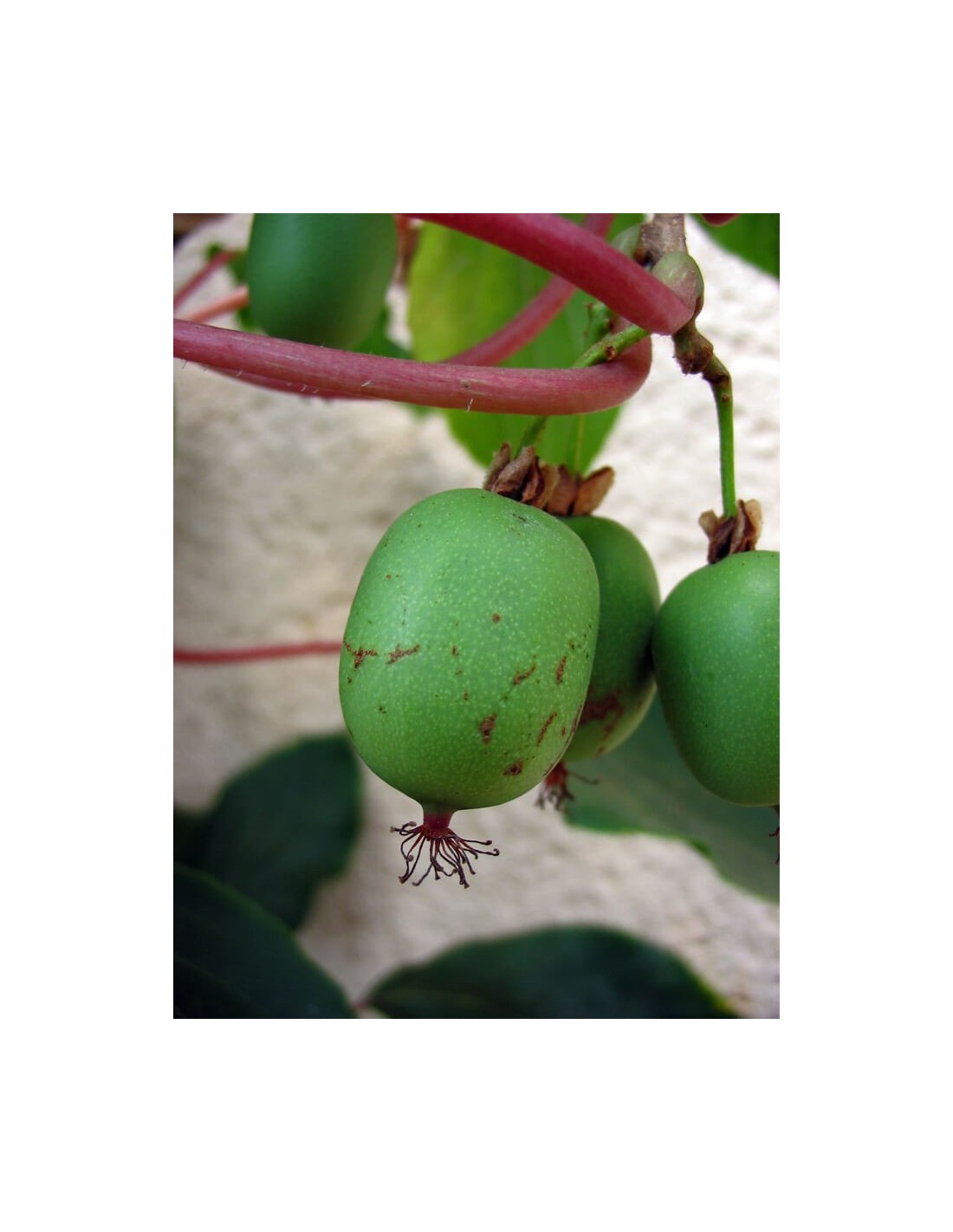 Esta trepadora de la familia del Kiwi, ¡lo tiene todo para gustarnos! En la primavera, su floración perfumada, aromatizara su jardin. Se sigue una abundante producción de pequeños frutos, (los Kiwiños), con la piel lisa y la carne dulce. Estos pequeños frutos que podemos cosechar en otoño, contienen la misma vitamina C, que su gran « primo » el kiwi. Finalmente, esta especie, al ser autofertil, incluso un pie aislado podrà producir frutos.